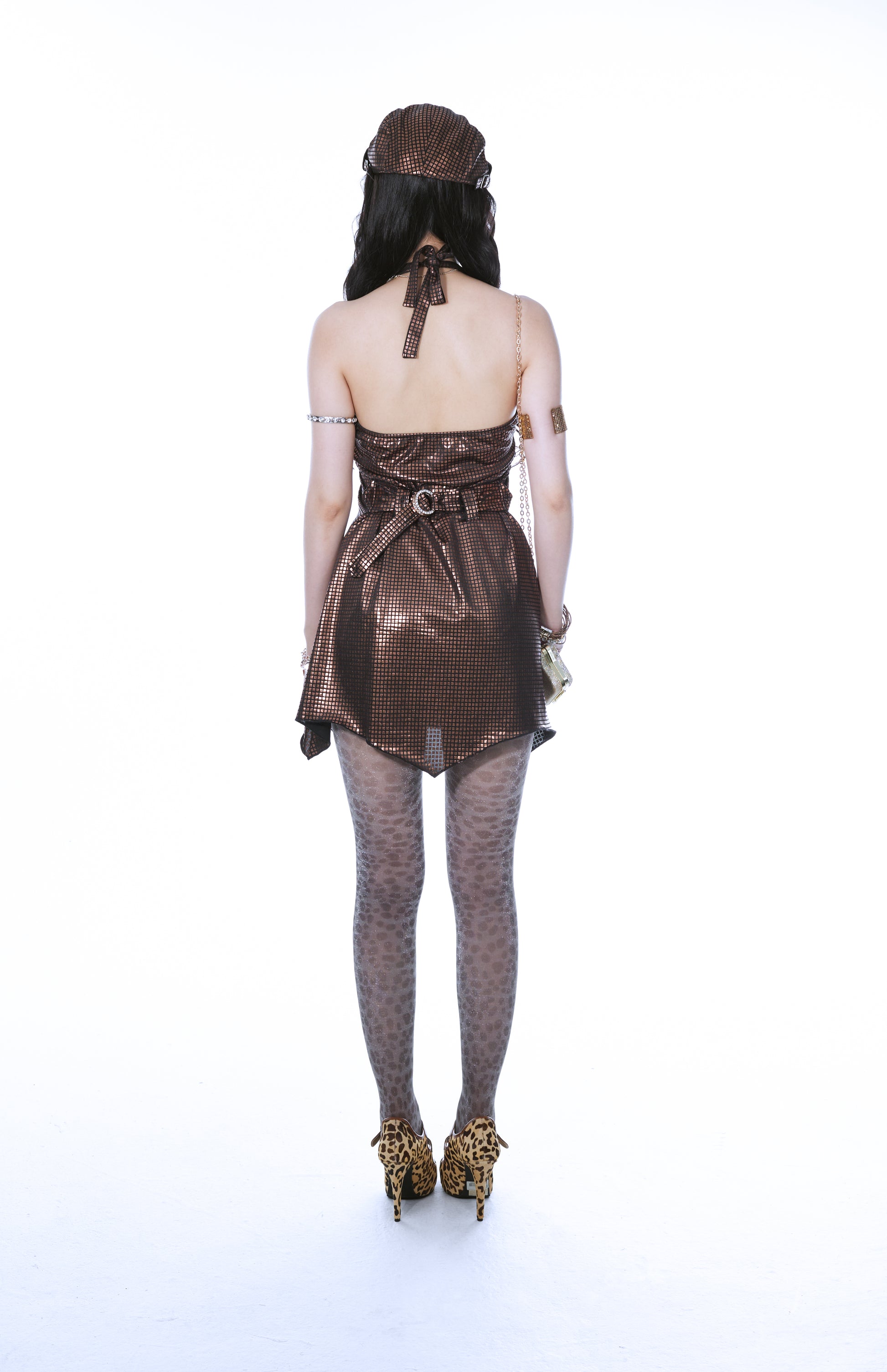 Ooops333 GLOSSY PLAID HALTER BACKLESS SEXY SLIP DRESS